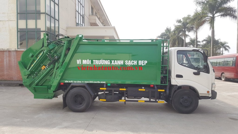 Xe cuốn ép rác hino 6 khối loại máng xúc. Xe cuốn ép rác Hino 6 khối loại máng xúc là dòng sản phẩm thuộc chủng loại xe môi trường là thuộc danh mục xe cuốn ép rác xe môi trường cuốn ép rác góp phần không nhỏ vào công tác bảo vệ và làm sạch môi trường sống của con người và đang là một trong những phương tiện không thể thiếu trong khâu thu gom rác thải cũng như "vì môi trường xanh sạch đẹp"Xe cuốn ép rác Hino 6 khối loại dùng máng xúc với hệ thống thùng ép rác 6 khối, có cơ chế nghiền và đầm nén, với tỷ suất nén cao và khả năng chuyên chở vừa phải. Xe ép, chở rác 6 khối Hino 6m3 với cơ chế hoạt động là rác được thu gom tại một điểm tập kết rộng rãi tại khu dân cư, sau đó nhờ hệ thống thủy lực và các máng sàn thùng được thiết kế để dễ dàng đưa rác vào thùng chứa rác, tại đây rác được nén lại trong thùng chứa và được vận chuyển đến các bãi rác để xử lý. Có quá trình thu gom và chuyên chở phế thải khép kín, đảm bảo vệ sinh, tránh gây ô nhiễm môi trường.